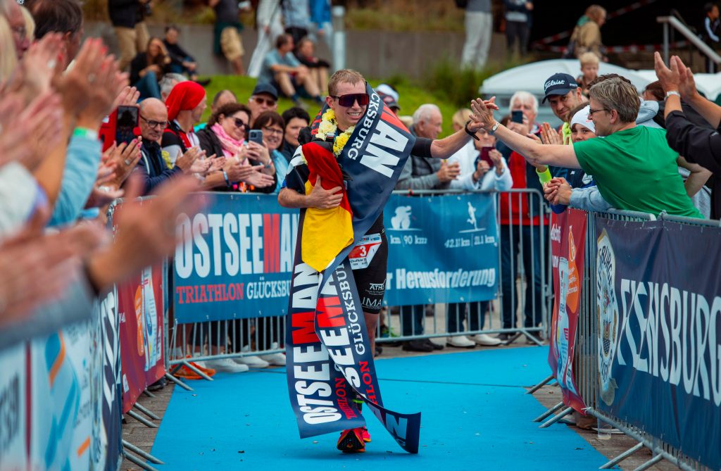 Maja Betz und Timo Schaffeld sind die neuen Deutschen Meister auf der Triathlon-Langdistanz und trugen sich mit zwei grandiosen Energieleistungen in die Siegerliste des OstseeMan-Triathlons ein. Mit einem neuen Streckenrekord setzte der Oberhausener Timo Schaffeld das sportliche Glanzlicht des großen Ausdauerspektakels in Glücksburg. Nach 8:11:32 Stunden erreichte der 27-jährige Oberhausener das Ziel und brachte den Dreikampf aus 3,8 km Schwimmen, 180 km Rad fahren und 42,195 km Laufen damit so schnell hinter sich wie zuvor noch kein anderer Triathlet auf den Strecken in und an der Flensburger Förde. Maja Betz vom SC Ostheim wiederholte in 9:31:51 Stunden ihren Vorjahressieg und verteidigte damit auch ihren Meistertitel.